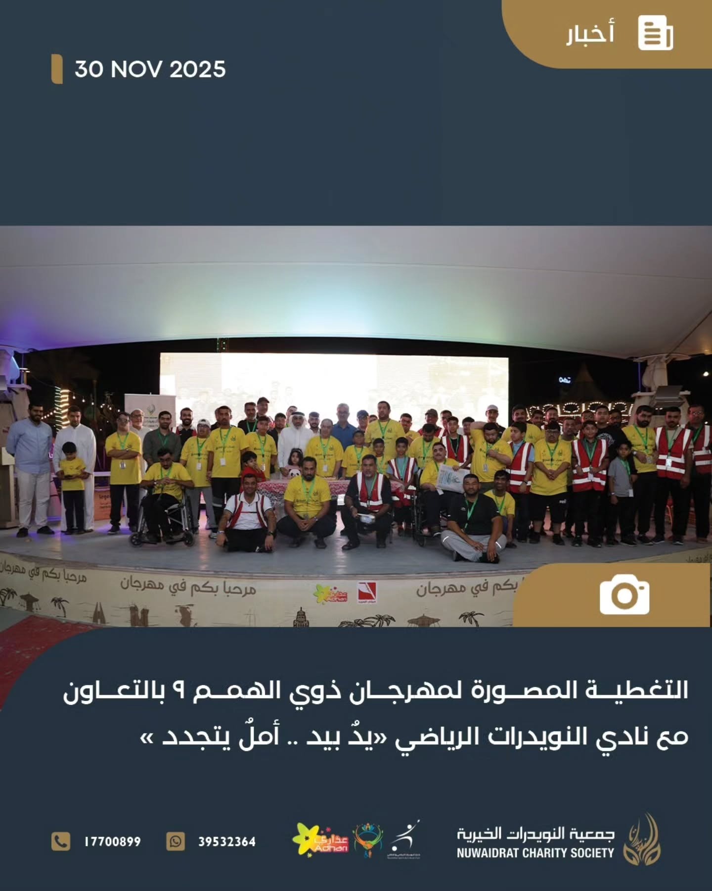 In a heartwarming atmosphere of love and solidarity, the Nuwaidrat Charity Association, in cooperation with the Nuwaidrat Sports Club, organized the 9th Annual People of Determination Festival, held this year under the slogan "Hand in Hand... Renewed Hope." The festival took place on Saturday, November 29, 2025, at Ain Adhari Park.