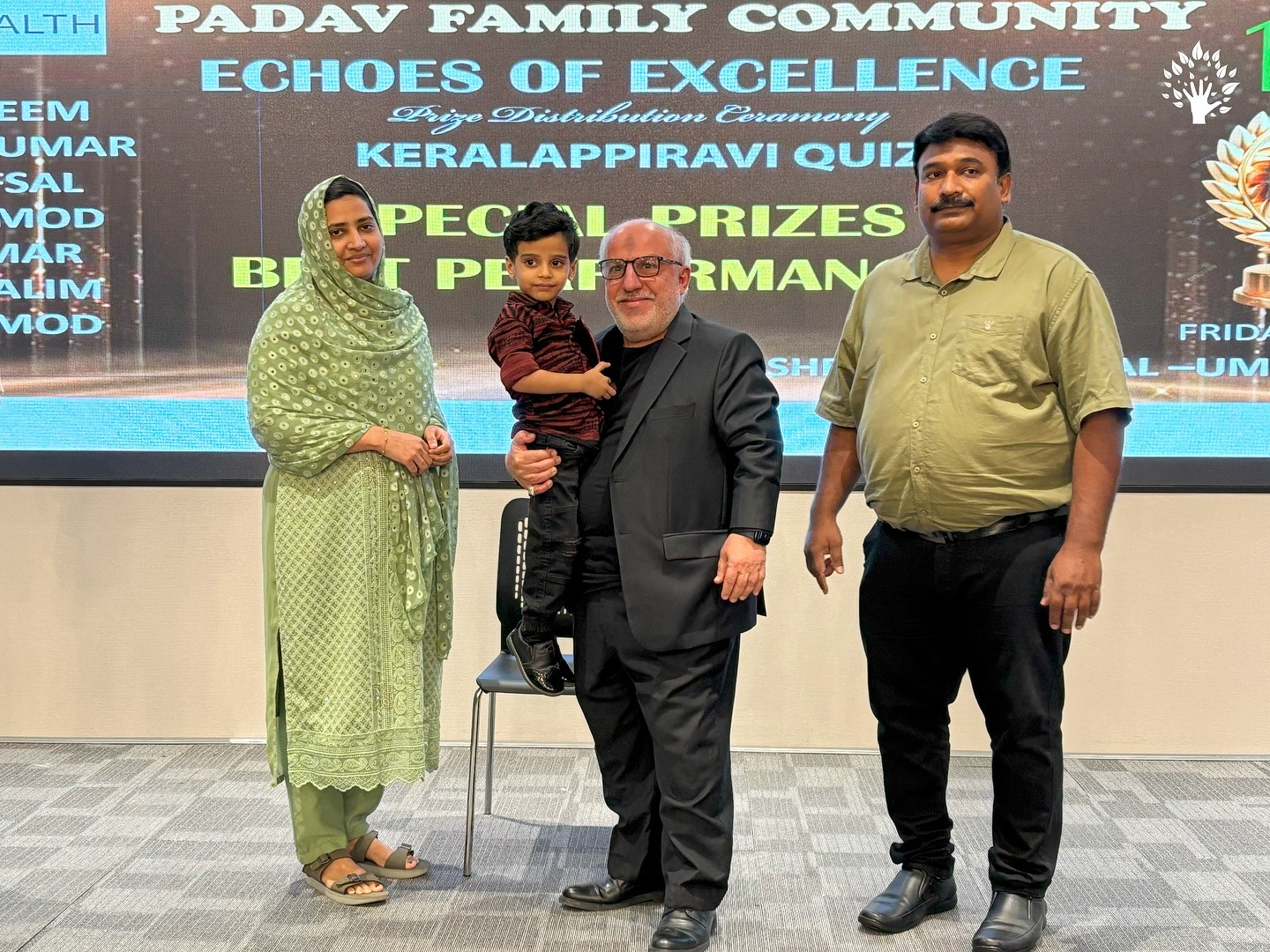 شارك رئيس الجمعية المهندس خليل الديلمي كضيف شرف في حفل توزيع الجوائز Echoes of Excellence الذي نظمه مجتمع PADAV Family Community بالتعاون مع KIMS Health يوم الجمعة 19 سبتمبر 2025 في مستشفى KIMS – أم الحصم. وفي كلمته، تحدث الرئيس عن دور الجمعية ورسالتها في خدمة المجتمع، وأكد على أهمية مثل هذه المبادرات التي تعزز روح التعاون وتكرّم المتميزين.