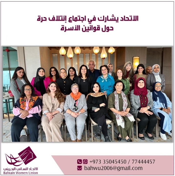 Ms. Badriya Al-Marzouq, Head of the Family Laws and Marriage Contract Document Committee at the Bahrain Women’s Union, participated in the meeting organized in Istanbul, Turkey, by the Free Coalition affiliated with the Equality Now organization, during the period from 18 to 20 October 2025.